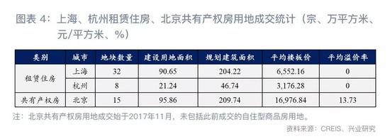住房租赁的推进形式主要为租赁住房用地供应,推进最为迅速的城市为上海、杭州,截至2018年6月12日,上海和杭州分别实际供应租赁住房的住宅用地32和8块,涉及规划建筑面积分别为204.22和46.74万平方米,竞得企业绝大部分为当地国企,地块全部为底价成交。上海租赁用地供应始于2017年7月,2017、2018年1-5月成交的租赁住房用地建筑面积分别占同期住宅用地成交总建筑面积比重达12.30%和22.19%;杭州租赁用地供应始于2017年10月,2018年以来租赁住房用地供应量迅速增长,但供应力度弱于上海,成交的租赁住房用地规模占同期住宅用地成交总建筑面积比重约为5.70%。除上海、杭州外,合肥、武汉2018年以来也推出了少量住房租赁用地。