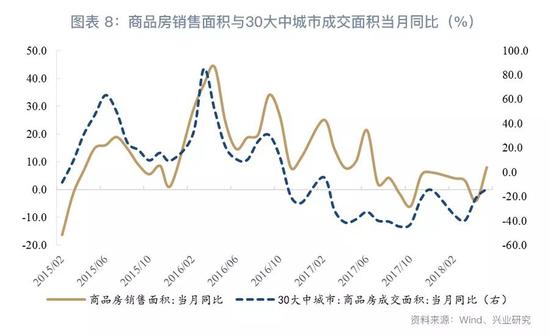 商品房销售仍维持同比微增,三、四线城市表现虽优于一、二线,但销售增长动能略显不足。全国商品房销售增速呈现下降趋势,截至2018年1-5月,全国商品房销售面积累计同比增长2.90%,其中4月商品房销售面积当月同比增速甚至为-4.09%,显示出全国商品房销售增长已有所乏力。分区域来看,大中城市市场有所回暖,30大中城市成交面积当月同比跌幅在2018年以来收窄,但全国商品房销售数据虽优于30大中城市表现却无明显上扬,显示出大中城市之外的三、四线销售增长动能有所减弱。