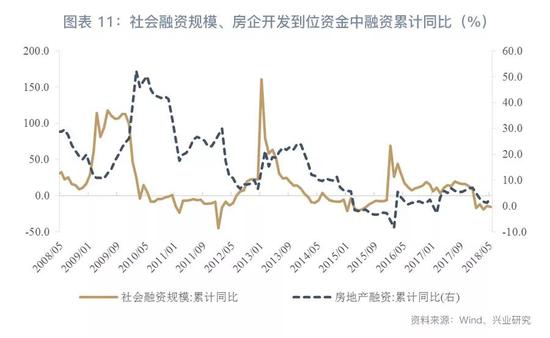 开发投资整体表现仍较好,但再融资压力对投资有较大制约。截至2018年5月底,房地产开发投资完成额累计同比增速达10.20%,较2017年底继续上升了3.20个百分点,投资数据仍表现抢眼,但实际从2018年3月以来,单月投资额同比增速则出现了持续走低,叠加社会融资规模数据2018年以来明显走弱,房地产开发到位资金来源累计同比增速承压,其中开发贷、按揭贷款累计同比已走入负值区间影响,房企投资增速存在下行压力。