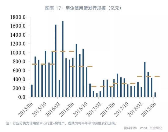 发行环境较2017年略有回暖,但整体仍不容乐观。2018年1-5月,房企信用债发行规模合计为2,334.73亿元,月均发行规模为466.95亿元,同比增长47.57%,较2017年下半年月均发行规模增长22.51%,房企信用债发行略有回暖;但从月度发行情况来看,2018年3月为房企信用债发行规模的小高峰,此后4、5月份房企发债体量明显下滑,6月发行规模预计大概率也将下滑,因此全年房企信用债发行情况仍不容乐观。
